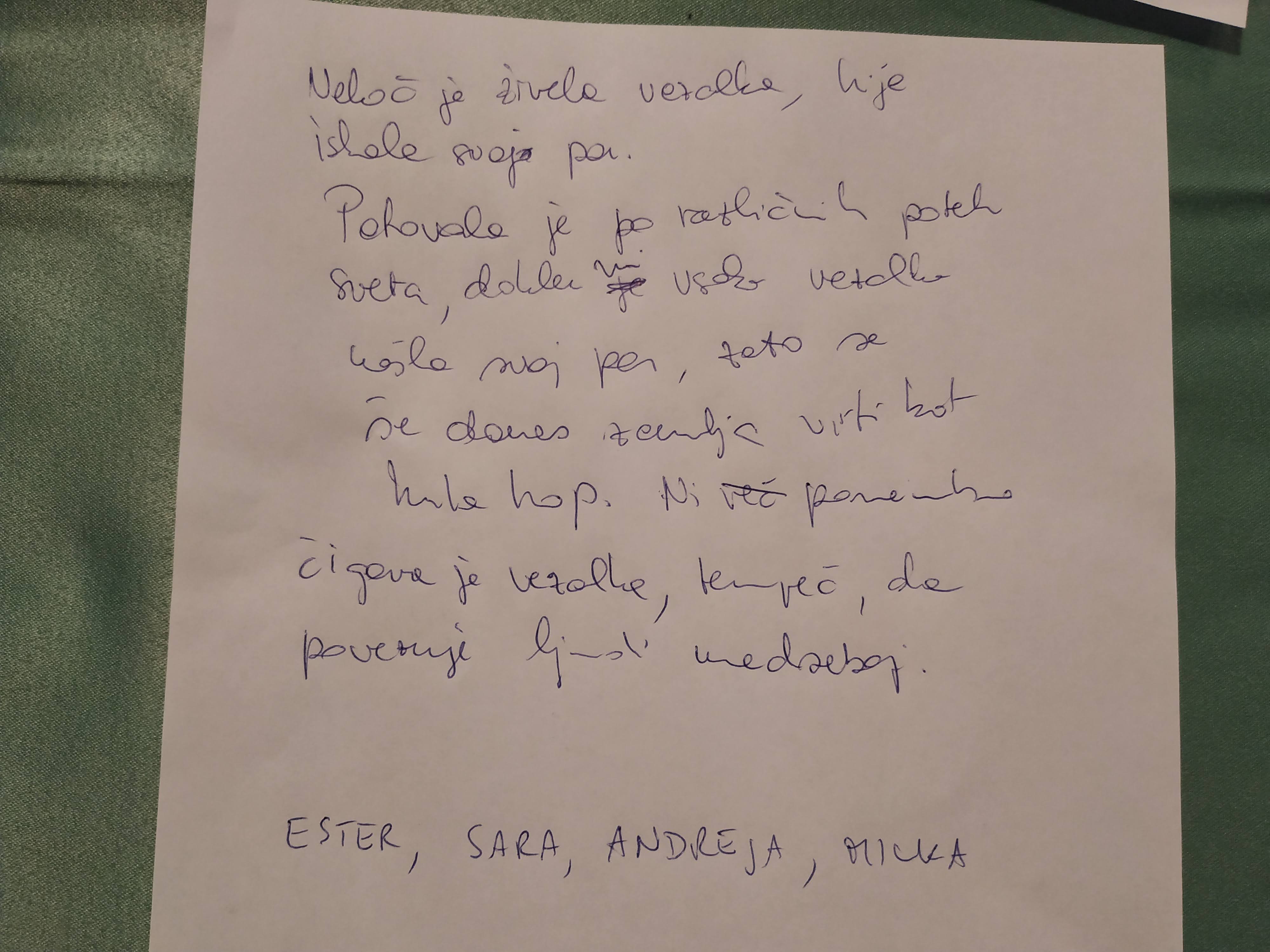 Kot dokaz igrivosti in ustvarjalnosti udeleženk (če nam morda prej še niste verjeli na besedo ?), pa z vami delimo še nekaj kratkih zgodbic, ki so nastale ob pogledu na fotografijo umetnika Toma Kieferja, na kateri so vezalke, ki so jih priseljenci izgubili ob selitvi.