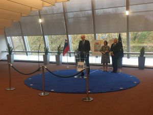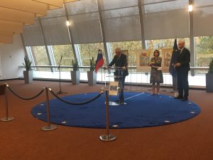 Med 19. in 21. novembrom 2017 se je manjša ekipa multiplikatork in ravnateljev v okviru projekta udeležila strokovne ekskurzije v Strasbourg. Najprej smo se imeli čast udeležiti dogodka ob otvoritvi razstave “Moj košček za mir”, na katerem so zbrane goste nagovorili predsednik Sveta Evrope, g. Thorbjørn Jagland, veleposlanica pri Stalnem predstavništvu Republike Slovenije pri Svetu Evrope, ga. Eva Tomič in minister Republike Slovenije za pravosodje, g. Goran Klemenčič. Vsi so poudarili, da je izredno pomembno, da si s skupnimi močmi prizadevamo za zaščito otrokovih pravic. Dogodek je bil odlična priložnost za povezovanje, izmenjavo izkušenj in idej kako poskrbeti za uspešno integracijo otrok priseljencev v vzgoji in izobraževanje ter širšo lokalno skupnost. V neformalnih pogovorih z gosti smo dobili tudi informacije o delovanju javnih osnovnih šol v Strasbourgu. Dogodek je bil tudi opomnik, da smo del širše zgodbe, v okviru katere tudi mi delujemo v smeri spodbujanja pomembnih sprememb za zagotavljanje boljšega življenja otrok in mladostnikov. Ob otvoritvi razstave so govorci poudarjali tudi vodilno vlogo Slovenije na področju otrokovih pravic in ponosni smo bili, da smo del skupine iz Slovenije.
