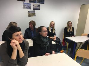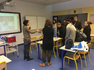 Prav tako pa smo si imeli priložnost ogledati še eno od francoskih srednjih šol – College International de l’Esplanade Strasbourg. Francoska 4-letna srednja šola je pravzaprav kot slovenska predmetna stopnja, obiskujejo jo namreč učenci med 12 in 15 letom starosti. Šola je velika, vključuje pa tudi okrog 120 otrok priseljencev. Na šoli so nas gostoljubno in prijazno sprejeli ravnatelj, učitelji in tudi učenci. Dve učenki priseljenki sta nas popeljali na ogled šole, z učitelji in ravnatelji pa smo razpravljali o šolskem sistemu, organizaciji pouka in dodatnih aktivnosti ter modelih in načinih vključevanja otrok priseljencev v Sloveniji in Franciji. Hvaležni smo, da smo imeli priložnost prisostvovati tudi na učni uri francoščine kot tujega jezika, kjer smo dobili tudi kakšno idejo za poučevanje slovenščine kot tujega jezika. Ugotovili smo, da je model vključevanja otrok priseljencev kot ga v letošnjem šolskem letu preizkušamo v okviru projekta, podoben praksi vključevanja otrok na tej mednarodni šoli. S šole smo šli z zavedanjem, da smo blizu preizkušenim dolgoletnim praksam, ki delujejo in dobili potrditev, da delujemo v pravi smeri. Tudi na tej šoli, tako kot v našem projektu, poudarjajo pomen socialnega vključevanja učencev, ki poteka vzporedno z učenjem jezika. Šola tudi sicer deluje zelo fleksibilno, upoštevajo in sledijo napredku vsakega posameznega učenca. Njihova knjižnica je prav tako zelo bogato opremljena z gradivi za začetno učenje jezika in z literaturo v različnih jezikih njihovih učencev. Pozitivno presenetili pa so nas tudi prijaznost, sproščenost, mir in red na šoli.