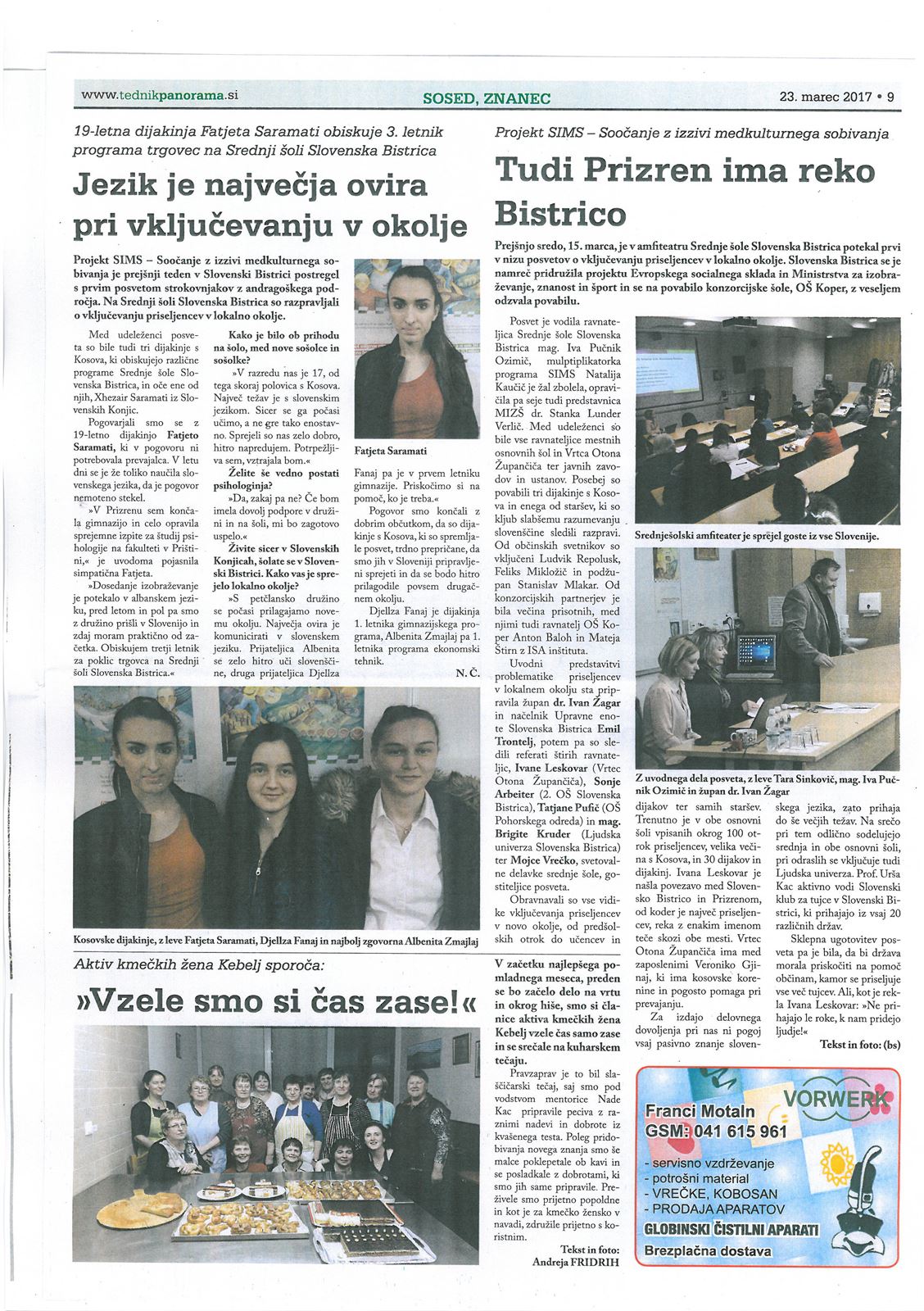 - Mojca Vrečko, svetovalna delavka na SŠSB,
